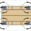 In plaats van 2 zwenk- en 2 bokwielen, zeer wendbaar in alle richtingen. Beperking bij rijden in rechte lijn.